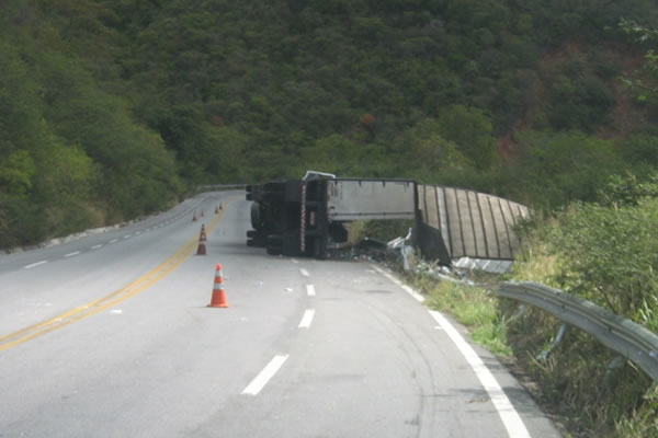 BARRO – Já no km 465 da BR-116, mais precisamente na curva do “S” à altura do município de Barro, um caminhão tipo baú de placas JVO-8169, inscrição de São Paulo (SP), tombou perto do acostamento da rodovia federal. O veículo levava uma carga de fraudas descartáveis e era dirigido por Ivan Paulo Rodrigues Leite, de 26 anos, residente na Rua Edmundo Pereira Leite, 408 no município de Cruz das Almas (BA).