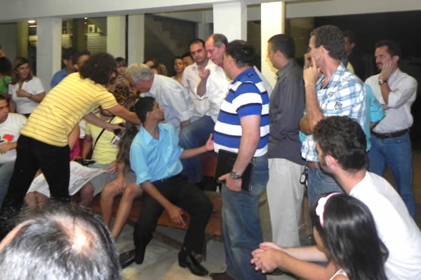 A convenção do PSB cratense, realizada ontem (29) no Crato Tênis Clube, foi iniciada com cerca de quatro horas de atraso e foi palco de muitos tumultos e protestos. A espera pelas presenças do governador Cid Gomes e do ex-ministro Ciro Gomes, além do atraso, criou um clima de tensão entre os presentes pela falta de informação.