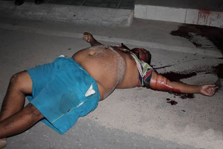 Levi Pereira da Silva Junior “Juninho Gordo” 32 anos de idade, residente na rua General Péricles, foi alvejado com cerca de seis disparos de arma de fogo, a maioria na região do pescoço e na cabeça e morreu no local. Populares informaram a policia que ouviram os estampidos e o barulho de uma motocicleta saindo do local, mas quando saíram na rua “Juninho” já se encontrava sem vida.