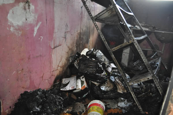 Imóvel incendiado no cruzamento das ruas São Paulo e Pio XII (Foto: Michel Dantas/Agência Miséria)