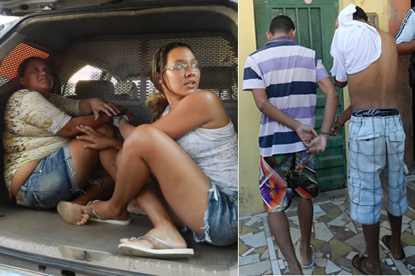 Josiane Soares Silva, de 24 anos, Marcina Soares Alencar, de 22, Francisco Roberto Lopes de Sousa, de 21 anos e um adolescente, foram levados para a 20ª Delegacia Regional de Polícia Civil (Foto: Chinês/Agência Miséria)