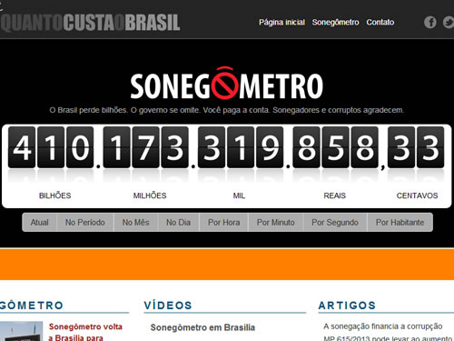 A sonegação de impostos rouba um quarto de tudo aquilo que o brasileiro paga todos os anos para os governos. Essa é a conclusão do cruzamento do Congresso em Foco sobre os dados divulgado pelo “Sonegômetro” e pelo “Impostômetro”, ferramentas virtuais mantidas pelo Sindicato dos Procuradores da Fazenda (Sinprofaz), pelo Instituto Brasileiro de Planejamento Tributário (IBPT) e pelas associações comerciais de São Paulo.