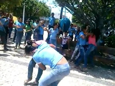 Um vídeo gravado por alunos de uma escola pública da cidade de Brejo Santo mostra o momento em que quatros alunas brigam no meio de uma praça da cidade.