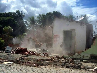 Enquanto a reconstituição acontecia, policiais garantiram a segurança da casa e do suspeito. Quando os policiais foram embora, a população começou a depredar o imóvel.