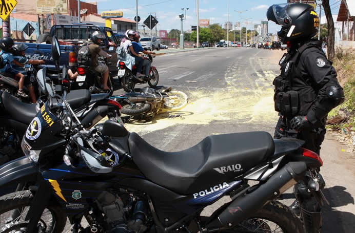 Na fuga, assaltantes bateram numa moto Honda Biz na Avenida Padre Cícero (Foto: Cícero Valério/ Agência Miséria)