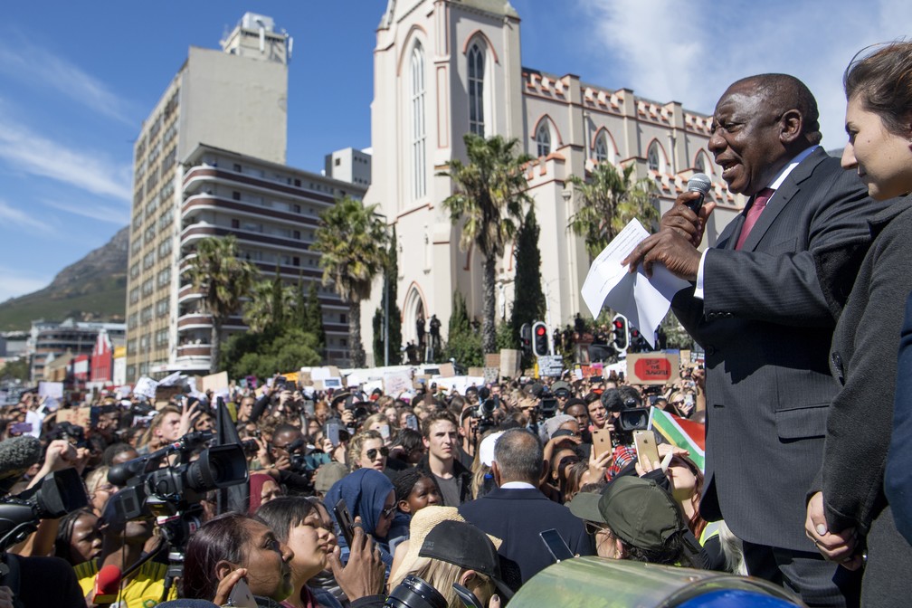 O presidente da África do Sul, Cyril Ramaphosa, prometeu na quinta-feira (5) intensificar o combate à violência contra a mulher no país após as manifestações desta semana. Ele compareceu às manifestações na Cidade do Cabo – que recebe o Fórum Mundial Econômico na África.