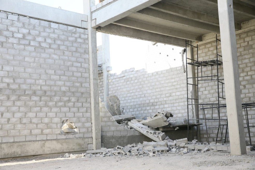 Conforme os bombeiros que atenderam a ocorrência, duas vigas que sustentavam uma caixa d'água colapsaram, o que gerou o desabamento de parte do teto da obra sobre os operários que trabalhavam no local.